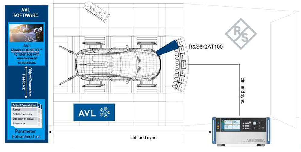 無論是與 AVL 的整車測試台架(實現整車在環 Vehicle-in-the-Loop 驗證),還是與 Vector 的軟體環境,我們都有成熟的整合方案,模擬軟體負責產生虛擬路況,並透過 OSI 介面將物件參數傳送給 AREG800A,AREG800A 再控制 QAT100 精準地在空中重現這些場景給待測雷達,整個過程流暢無比,是一個真正開放、靈活的生態系。