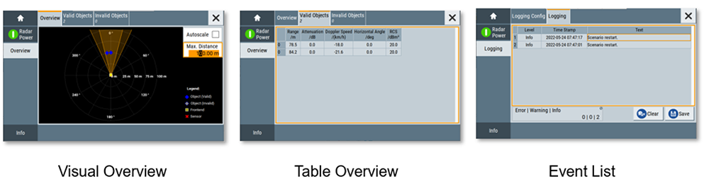 在模擬過程中,您還可以透過多個監控視窗,即時查看虛擬物件的位置、速度、雷達截面積 (RCS) 等詳細參數,並利用事件列表快速定位問題,確保一切都在您的掌控之中。