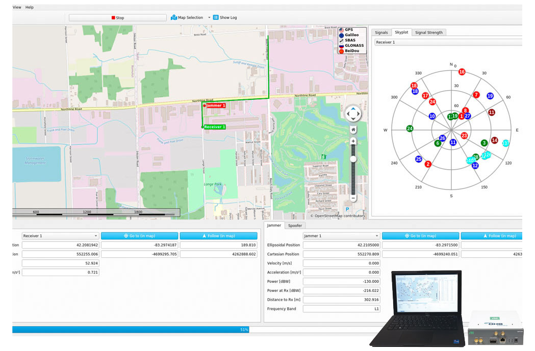 支援 GPS, Galileo, GLONASS, BeiDou, QZSS, NavIC, SBAS 等所有民用星系。 - 干擾模擬能力: