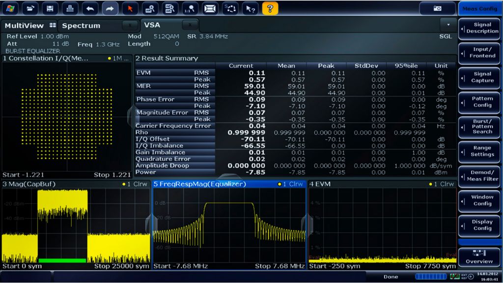 透過 R&S FSW-K70 選配,可深入分析衛星訊號的調變品質與誤差向量幅度 (EVM)。