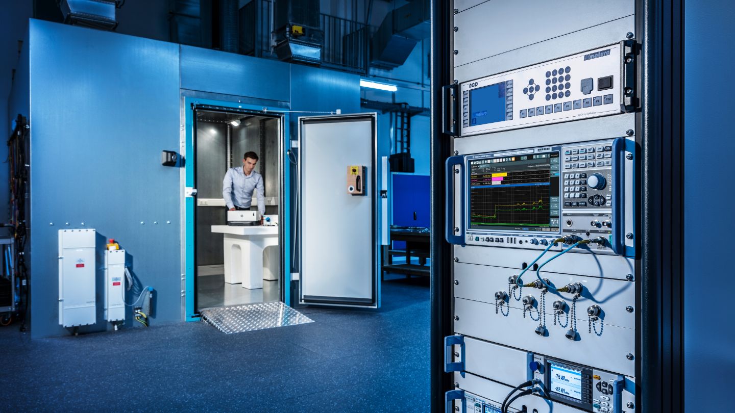R&S 系統的核心在於我們自家研發的頂尖儀器,例如:EMI 測試接收機 R&S ESW 提供了極寬的動態範圍和超快速的時域掃描(Time Domain Scan),能大幅縮短認證測試時間;而在 EMS 方面,R&S BBA 與 BBL 系列寬頻放大器提供了市場上最高的靈活性,支援從 4 kHz 到 6 GHz 的頻率範圍以及高達 10 kW 的功率,並具備液冷或氣冷選項。