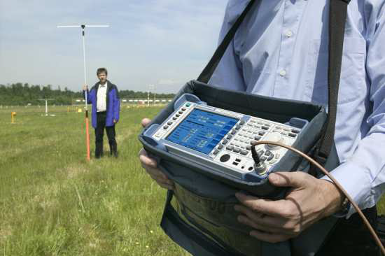 使用 R&S SMA100B 產生具備穩定 90 Hz 與 150 Hz 調變音頻的精準 ILS 訊號 (包含定位台 LOC 與下滑台 GS),其極高的訊號純度確保了任何測得的失真皆源自於待測物,而非訊號源本身。 - 現場分析: