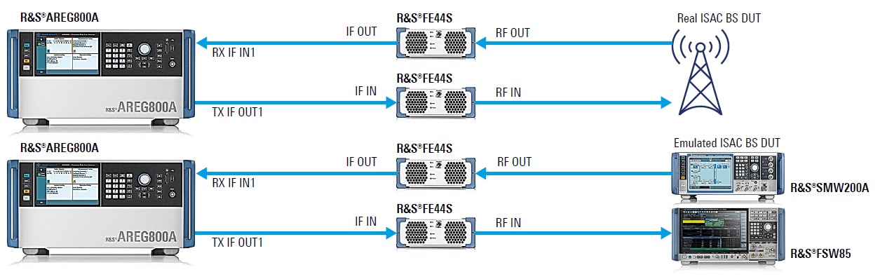 Rohde & Schwarz 擁有可靠且可重複的測試解決方案,能讓 6G 測試朝著正確的方向成長和發展,R&S®AREG800A 車用雷達回波產生器可與 R&S®FE44S 外部前端結合,用於 FR2 頻段的頻率轉換,該量測解決方案適用於在 24 GHz 至 44 GHz 的頻段範圍內產生人造物體,兩個 R&S®FE44S 都以較低的中頻頻率連接到基礎儀器。