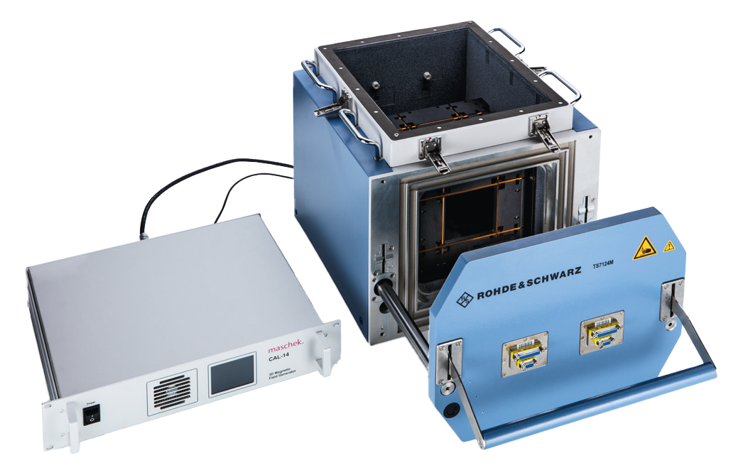 配備亥姆霍茲線圈與磁場產生器的 R&S®TS7124 射頻隔離箱。