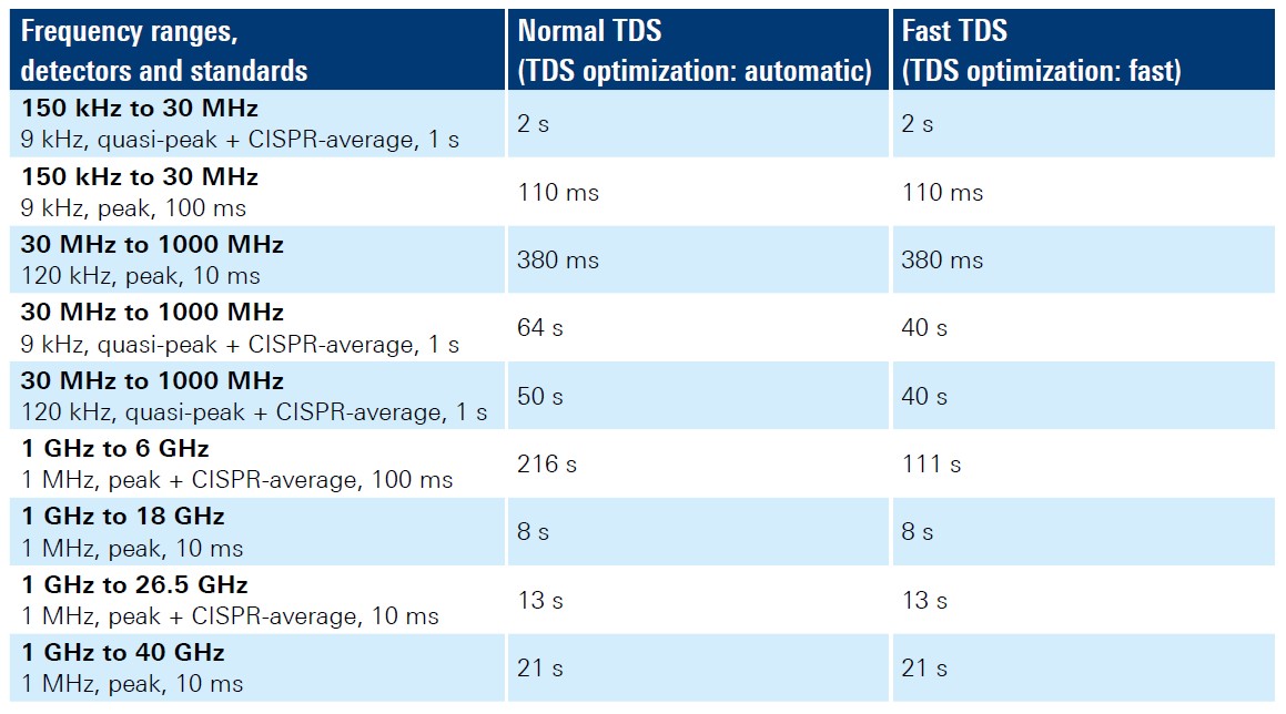 特別是在車用電子標準 CISPR 25 中,對於 30 MHz 至 1000 MHz 頻段,若使用 9 kHz 的窄解析頻寬(RBW)進行量測,傳統掃描的計算複雜度極高,最新的「Fast TDS」模式透過優化重疊處理與窗函數算法,能將此類繁瑣測試的時間縮短至 40 秒以內,且依然完全符合 CISPR 16-1-1 對於準峰值(Quasi-peak)檢波器的嚴格要求,這種速度上的提升,讓系統能夠在開發早期就進行多次全掃描診斷,大幅降低了後期重新設計的成本。