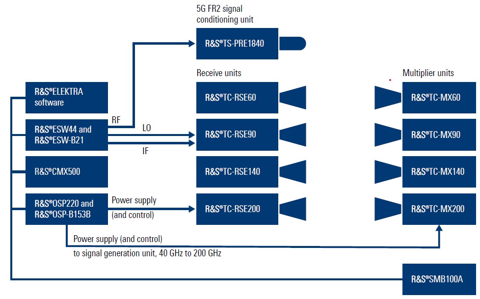 針對 5G FR2 高達 200 GHz 頻段設計的 RSE 測試系統,整合了倍頻器與頻率轉換單元,實現全自動化 TRP 評估。