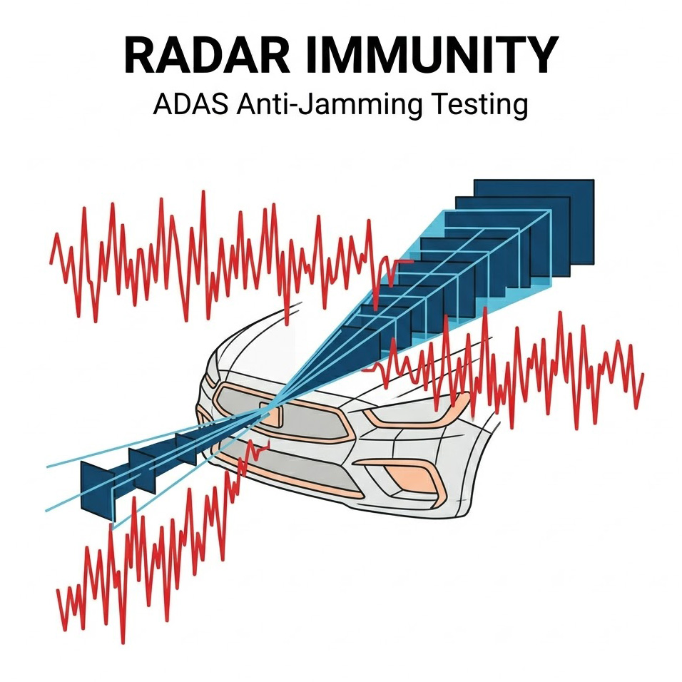 然而隨著配備多顆長距、中距與短距雷達的 L3/L4 級別車輛大量上路,道路上的射頻頻譜資源正經歷史無前例的壅塞,當兩輛或多輛配備相似規格雷達的汽車在十字路口交會,或在高速公路上並排行駛時,彼此發射的微波訊號會不可避免地互相照射,根據國際標準組織 ISO 21448 預期功能安全(SOTIF)規範,以及歐盟新車安全評鑑協會(Euro NCAP)的最新測試指引,車廠必須嚴格量化並證明其 ADAS 系統在遭受高強度「雷達間干擾(Radar-to-Radar Interference)」時的穩健性與免疫力,系統必須具備在強烈電磁干擾下,依然能從龐大的背景雜訊中萃取出真實目標,並有效濾除虛假目標的演算法韌性。