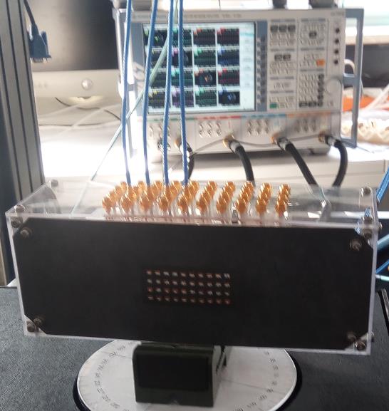 第 3 章展示了在一組創新的 X 波段(X-band)混合主動-寄生式(hybrid intentional-parasitic)天線陣列(共四個元素)上所進行的量測,透過僅一次連接循環(single connection cycle),即可同時完成天線的 S 參數量測與發射模式下的波束指向(Tx-mode beamsteering)驗證。