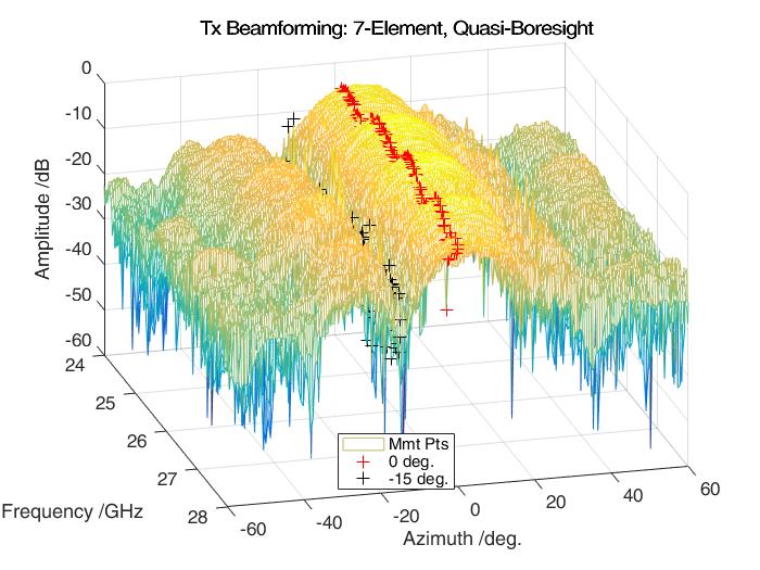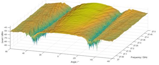 此特性使之能以極高解析度進行波束指向(beam steering),並在天線的發射模式(Tx mode)下進行波束成形(beamforming)量測,同時仍可在相同連接循環內執行 S 參數量測。