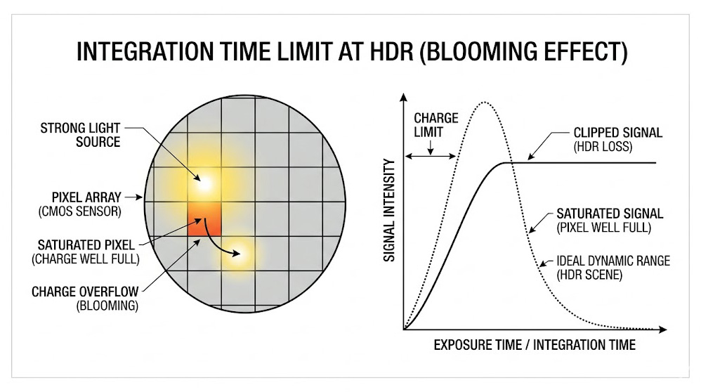 高動態範圍(HDR)場景下的積分時間極限與飽和盲區