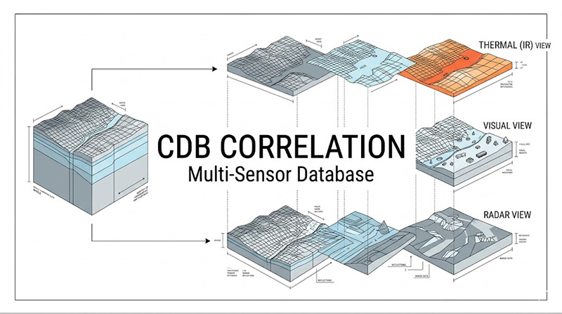 在複雜的交戰環境中,無人機可能同時啟動可見光攝影機、長波紅外線(LWIR)以及主動測距雷達,測試規範要求這些感測器在虛擬空間中所讀取到的同一座標點(如一座橋樑的邊緣),其幾何高度與空間特徵必須達到次公分級的零誤差關聯(Zero-error Correlation),傳統的專有資料庫格式在轉換過程中往往會產生多邊形網格(Polygon Mesh)的微小位移,導致 OTW 畫面與感測器畫面產生空間解離,工程師面臨的痛點在於,影像產生器(IG)必須具備「原生直讀(Native Implementation)」CDB 檔案的底層架構,在不經過任何破壞性轉檔器(Converter)的條件下,即時串流龐大的地理節點,確保所有異質感測器通道完全基於同一組底層資料矩陣進行解算。
