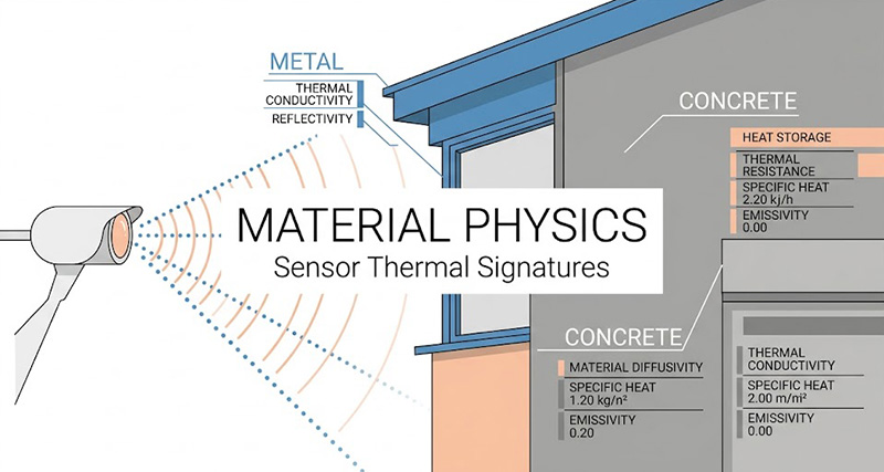 要讓紅外線(IR)與雷達感測器模擬發揮作用,3D 地貌不能僅有 RGB 顏色貼圖,必須深度綁定「材質物理特性(RMTexture, Roughness-Metallic Texture)」,例如同樣外觀的屋頂,金屬材質與混凝土材質在太陽照射下的熱容量(Thermal Mass)與輻射率(Emissivity)截然不同,從而在 LWIR 感測器上產生熱交叉(Thermal Crossover)現象;在 CDB 規範中,這些物理特徵被定義至個別的多邊形(Per-polygon Material Assignment)甚至點特徵(Point Features)上,當無人機在低空高速飛行時,影像產生器必須即時計算數百萬個多邊形的大氣衰減、局部熱源(如城市輝光 City Glow)與即時溫度梯度,這種高動態範圍(16-bit HDR)的輻射度渲染會大量佔用 GPU 的材質提取單元,極易導致幀率(Frame Rate)驟降與感測器追蹤脫鎖。
