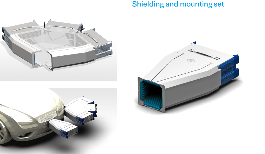 R&S®QAT-Z50 屏蔽系統和 R&S®QAT-Z53 屏蔽三重奏可確保為 R&S®QAT100 提供幾乎無干擾的射頻環境,小型貼片天線與覆蓋吸波材料的表面相結合,可提供乾淨的射頻前端,並具有極低的 RCS,從而降低感測器本底噪聲並抑制近距離目標和潛在的多徑反射。