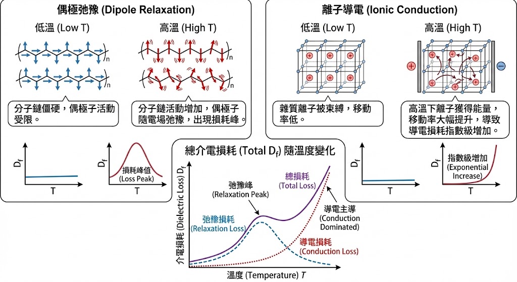 介電損耗 (Df) 的熱效應:弛豫與導電