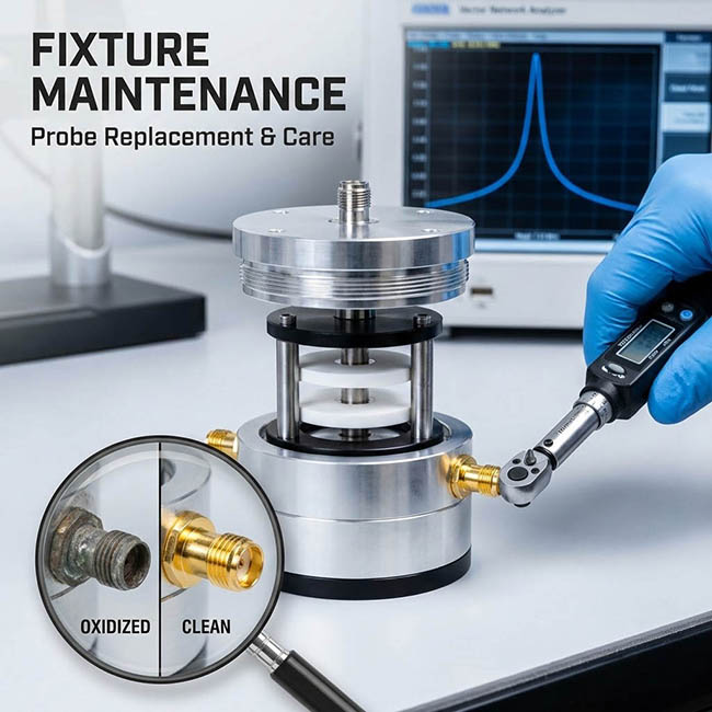 許多高階治具供應商提供 探針更換服務,這不僅是換一個零件,更重要的是在更換後,必須使用標準件(如 Teflon 或校正過的石英片)重新驗證治具的共振頻率與 Q 值是否回復到出廠水準。 - 自行更換風險: