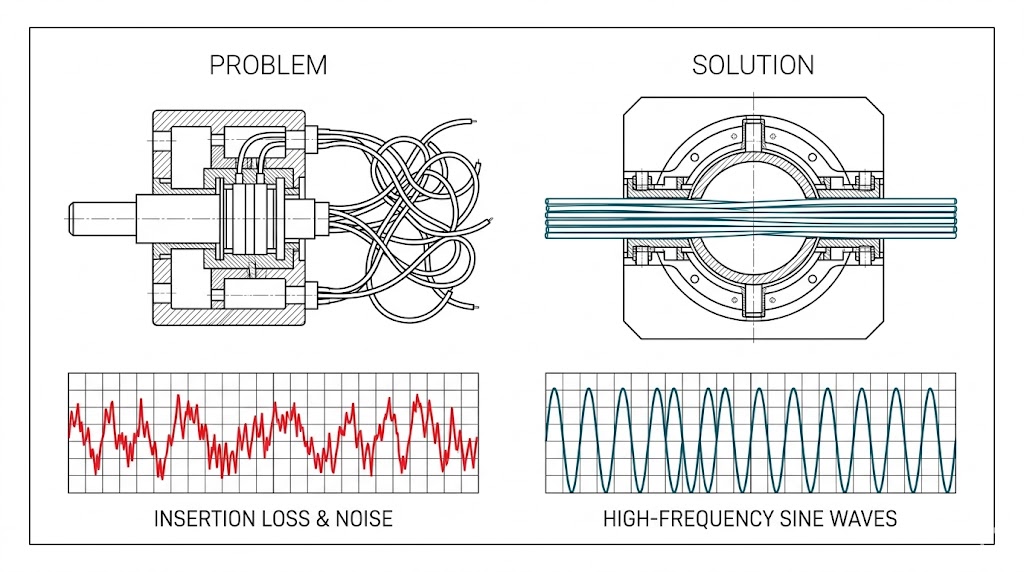 管線纏繞極限與傳統滑環的「高頻訊號衰減」