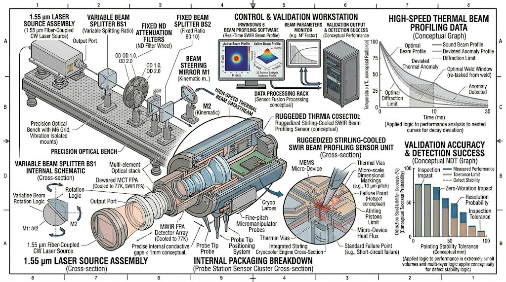 在現代自由空間光通訊 (FSO)、車載光達 (LiDAR) 與精密雷射加工領域,1.5 µm 至 2.5 µm 頻段的短波紅外線 (SWIR) 雷射因具備極佳的大氣穿透率且符合「人眼安全 (Eye-safe)」規範,已成為先進光電研發的主流。為了精確評估這些雷射的絕對光束質量 (M² factor)、發散角與空間能量分佈,利用二維感測陣列進行高解析度的雷射光束輪廓分析 (Laser Beam Profiling) 是驗證其光學效能的核心環節。