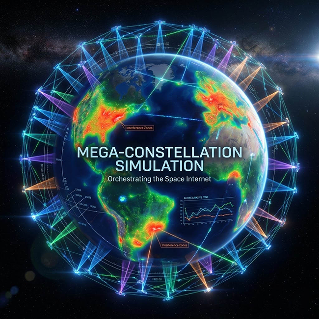 要同時模擬數百顆衛星的射頻訊號是不切實際且昂貴的,我們推薦的解決方案採用了 「全星系運算,重點模擬」 的智慧策略。