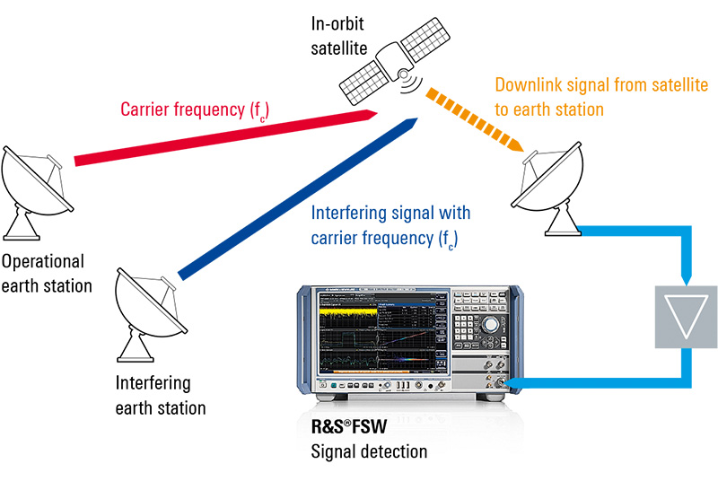 VSA 應用還有助於分析和排除衛星鏈路中的複雜干擾問題,例如當無線通訊訊號干擾地面站訊號,或當多個衛星地面站彼此干擾時,一個特別具有挑戰性的情況是隱藏式載波干擾 (Carrier-in-Carrier) 量測。