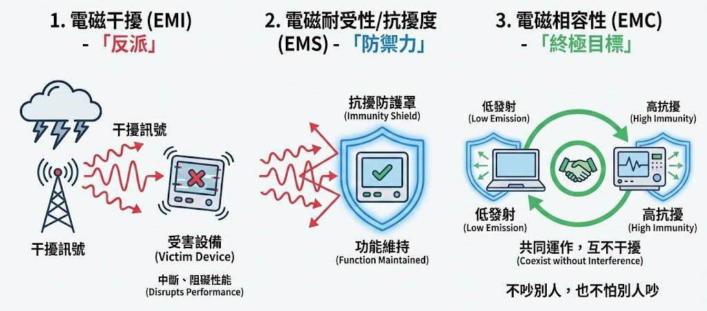 電磁相容的三大支柱:EMC、EMI 與 EMS