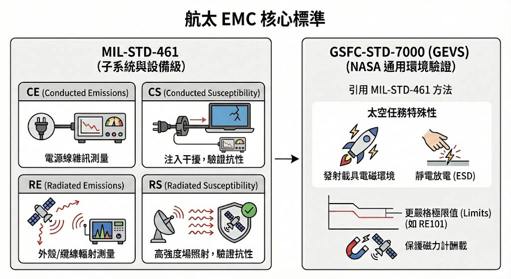 核心標準解析:MIL-STD-461 與 GSFC-STD
