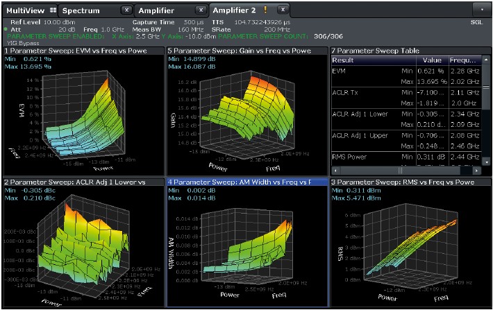 透過參數掃描將量測結果繪製成 3D 圖(例如 功率 EVM 頻率),工程師可以藉此一目瞭然地在複雜的參數空間中,快速找到 DUT 的最佳操作點,確保在滿足高效率的同時,訊號品質(EVM)也能保持在規格要求內。