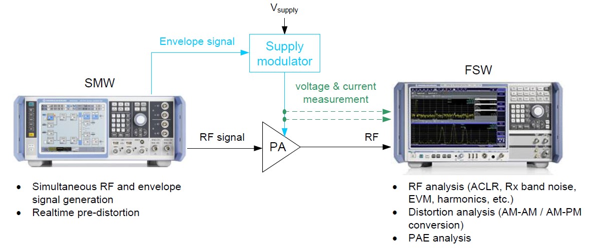 Rohde & Schwarz 針對封包追蹤功率放大器(ET PA)所提供的測試解決方案,不僅功能極其強大,且使用非常簡便,該方案由高階向量訊號產生器 R&S®SMW 與高階訊號分析儀 R&S®FSW 組成,所有與 ET PA 測試相關的挑戰,皆能以使用者友善的方式獲得解決,從而簡化並加速測試流程。