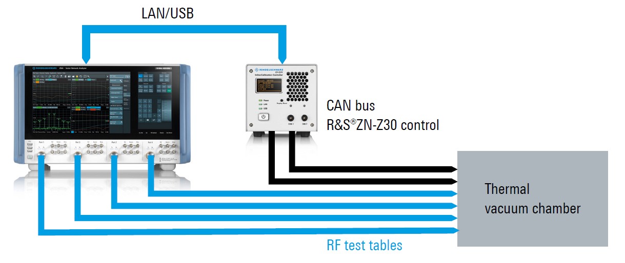R&S®ZN-Z30 CAN 匯流排網路,以及 R&S®ZN-Z32 與 R&S®ZN-Z33 校正單元的控制,皆已整合至 R&S®ZNA 的 R&S®SMARTerCal 概念中,可實現無縫的遠端控制校正與原位(in situ)重新校正,R&S®ZN-Z33 在線校正單元的工作頻率最高可達 40 GHz,並可提供符合熱真空(TVAC)環境要求的版本。