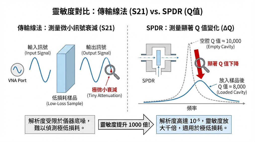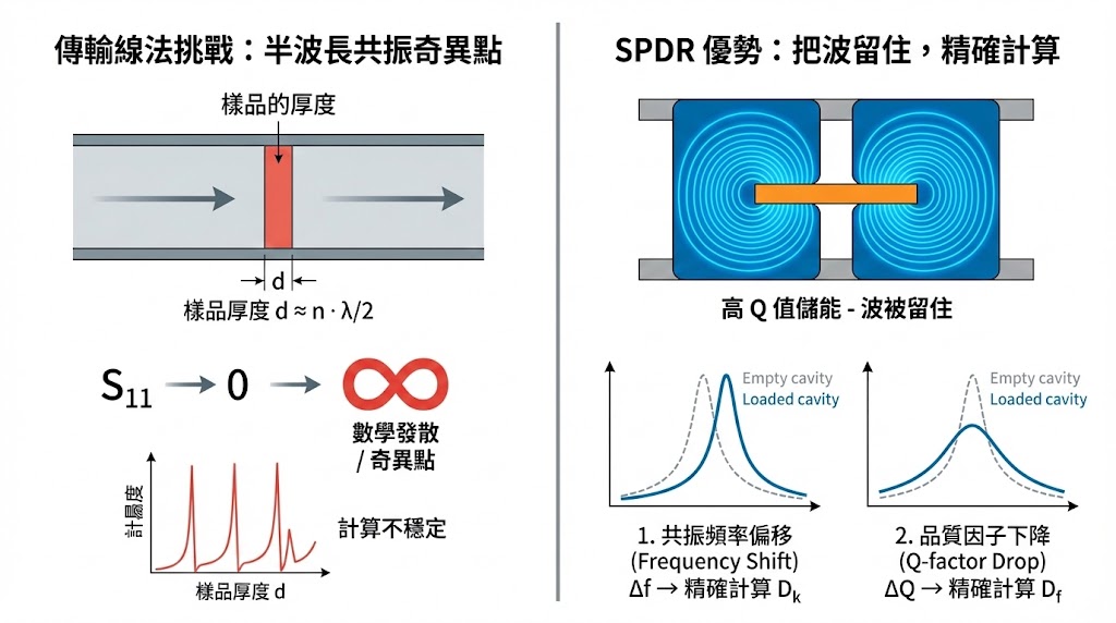 SPDR vs. 傳統傳輸線法:為什麼量測低損耗材料 (Low Loss Material) 必須用共振腔?