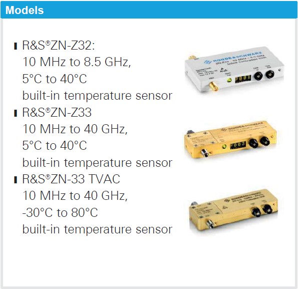 R&S®ZN-Z33 TVAC 版本10 MHz 至 40 GHz-30°C 至 +80°C內建溫度感測器