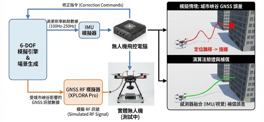 • 混合威脅模擬:系統可以在模擬城市多路徑的同時,疊加 干擾(Jamming欺騙(Spoofing 訊號,這對於驗證警用或物流無人機在複雜電磁環境下的生存能力至關重要。