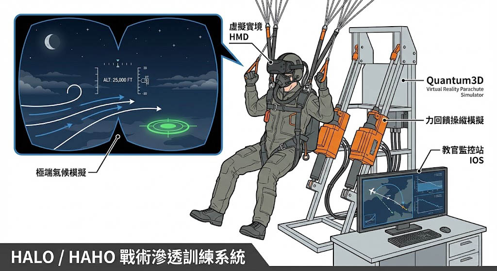 這套系統完美結合了 Quantum3D 在視覺模擬領域的深厚積累與現代 VR 技術,為傘兵部隊提供了一個安全、高效且低成本的訓練環境。