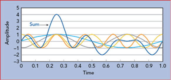 圖 1:四個正弦波子載波的總和,導致偶爾出現的劇烈功率峰值。