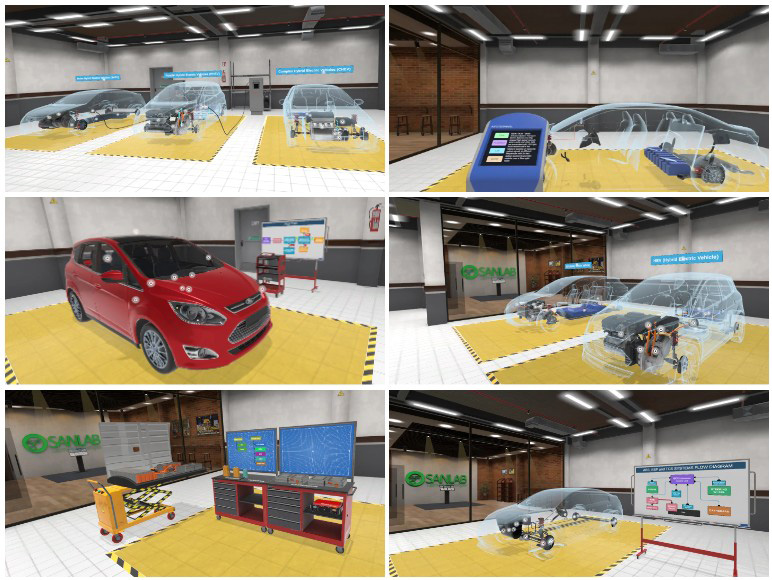 SANLAB 虛擬工作坊在電動車維護模擬器中,架起了理論與實務的橋樑,以滿足電動和混合動力車輛技術的教育需求,在逼真、安全的環境中提供動手實操經驗;透過互動式模擬和真實的車輛組件,我們的虛擬工作坊使使用者能夠建立診斷、修理和電動車維護的基本技能,每個情境都複製了真實世界的任務,提供對電動和混合動力車輛系統的理解,這種方法增強了技術技能和使用者信心,為他們應對產業需求做好準備。