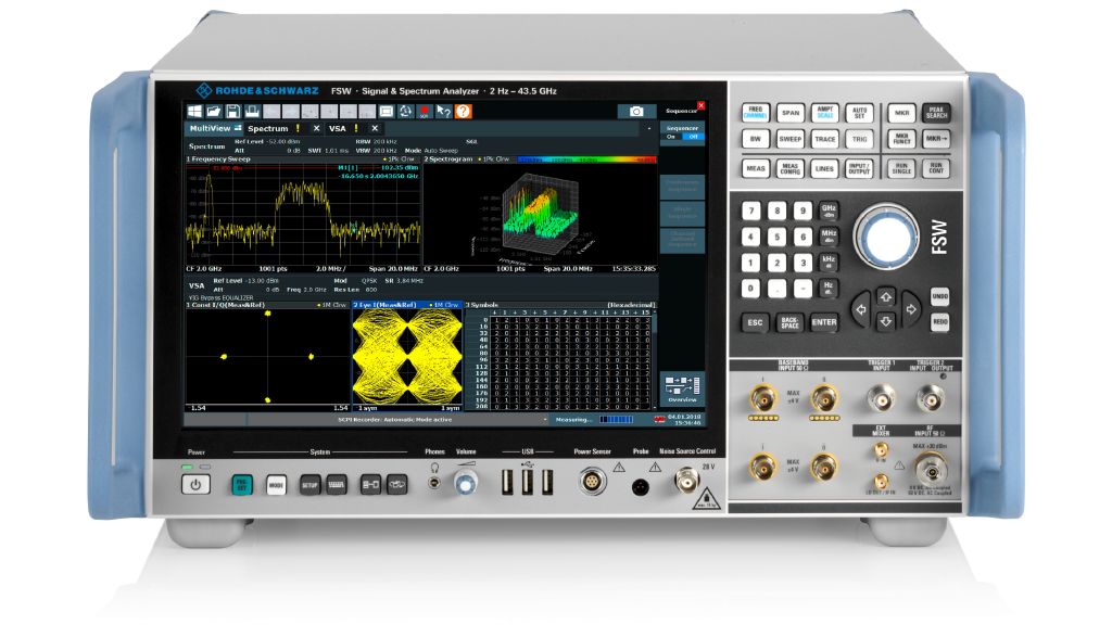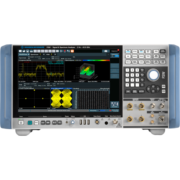 R&S FSW 訊號與頻譜分析儀是高性能射頻(RF)測試領域的標竿並重新定義了精確度,它結合了三大核心優勢:高達 8.3 GHz 的超寬分析頻寬、業界領先的極低相位雜訊,以及高達 800 MHz 的即時頻譜分析能力。