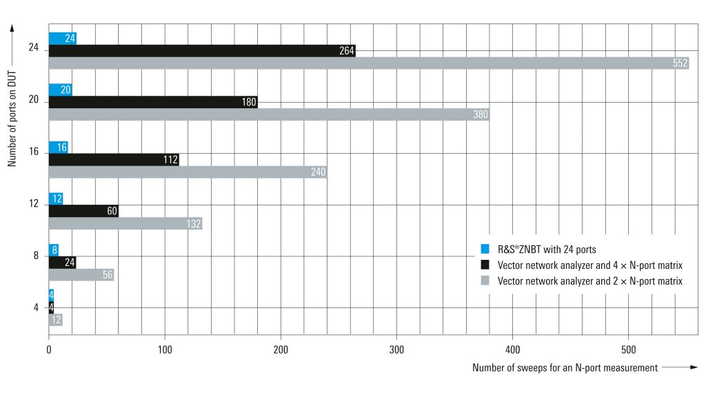憑藉這些完全整合的測試埠,R&S®ZNBT 不僅能輕鬆量測單個多達 24 埠的複雜元件,還能實現同時測試多個待測元件(DUT),大幅提升測試效率。